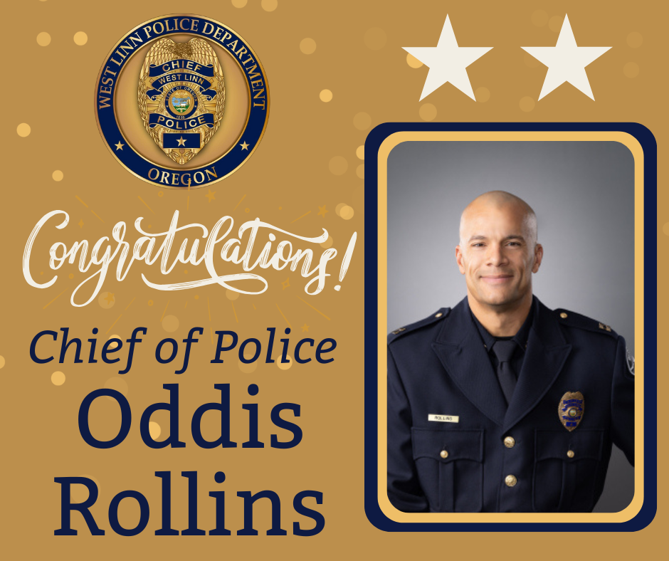 Chief Oddis Rollins was recently appointed Chief of Police for the City of West Linn, bringing more than two decades of law enforcement experience to the role. His career began with the Tigard Police Department, where he served as a patrol officer and detective before joining the West Linn Police Department in 2015.