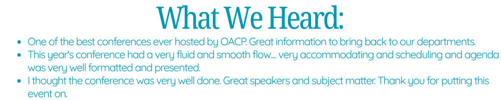 For those unable to attend, please stay tuned for video uploads of each session as they become available in the members-only area of the OACP website. And as always, our sincere thanks to Kerry Drum for her outstanding videography, along with her very capable assistant, Captain Jerry Drum.