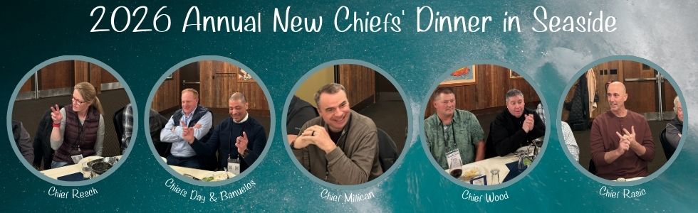 During the New Chiefs' Dinner at last week’s Executive Leadership Training Seminar, attendees were given a warm and personal introduction to Oregon’s newest chiefs - revealing the winding paths, passions, and personalities that ultimately shaped their leadership. **Chief Jami Resch** shared that her career in policing began with a bet to take the Portland Police Bureau test - an unexpected decision that changed her life trajectory, as she otherwise envisioned herself in the medical field. **Chief Jason Millican** spoke a bit about his personal health journey - having lost 100 pounds - along with his love of golf and the fact that, in another life, he might have been a plumber. Other stories highlighted equally rich and varied experiences. **Chief Bob Day ** (who was not able to attend during our 2025 event) recalled riding horses early in his career with PPB, noting that policing was always his calling, even if his mother once hoped he’d become a preacher. His ideal escapes now range from African safaris to trips to Disneyland. **Chief Tino Banuelos** shared that law enforcement was always his goal - starting as a cadet at just 17 - and later expanding his service by joining the Oregon National Guard as a medic at age 38. **Chief Cord Wood ** nearly became a pharmacist, grew up ranching in Oregon, and spent his early years near the heart of the Rajneesh movement. His wife, Josie, also shared a personal connection to the Association as the daughter of past OACP President Jim Soules. Finally, **Chief Pete Rasic** the middle child of seven, spoke about always being the peacemaker, his lifelong desire to be in policing, and his many talents outside of work - ranging from handyman skills to beer making. Together, these stories painted a vivid picture of leaders shaped not just by the badge, but by the diverse experiences that brought them there.