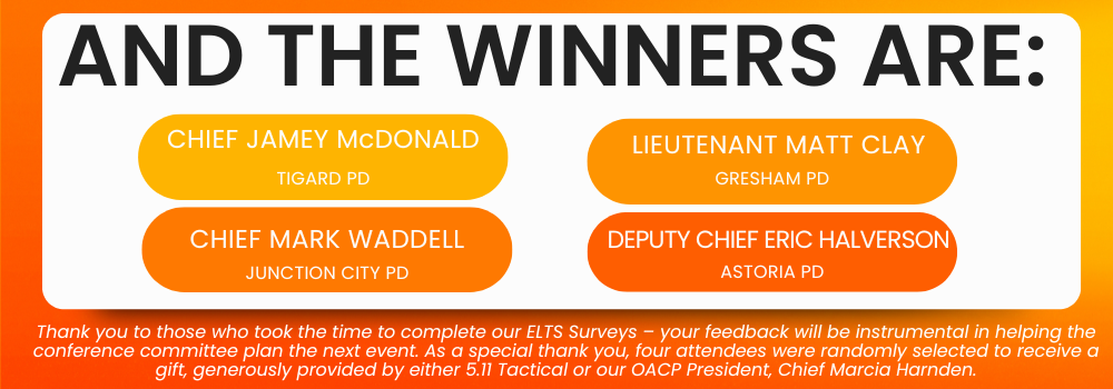 The Executive Leadership Training Seminar (ELTS) brought together 150 law enforcement leaders in Seaside for an engaging and energizing week of leadership development. Attendees enjoyed engaging speakers, great food, and meaningful peer connection throughout the conference. A special thank you to Chief Todd Engstrom and Chief Steve Winegar (Ret.), who confidently shared their insights and seasoned perspective with their peers.