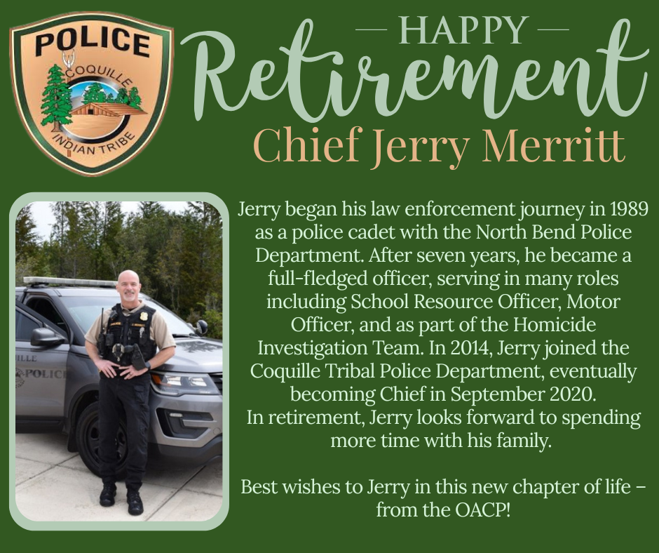 The OACP also extends it's appreciation to Chief Don Taylor who provided more than 30 years of dedicated service to the City of Turner. Following his official retirement last September, Chief Taylor graciously contracted back with the city to ensure continuity during the leadership transition.