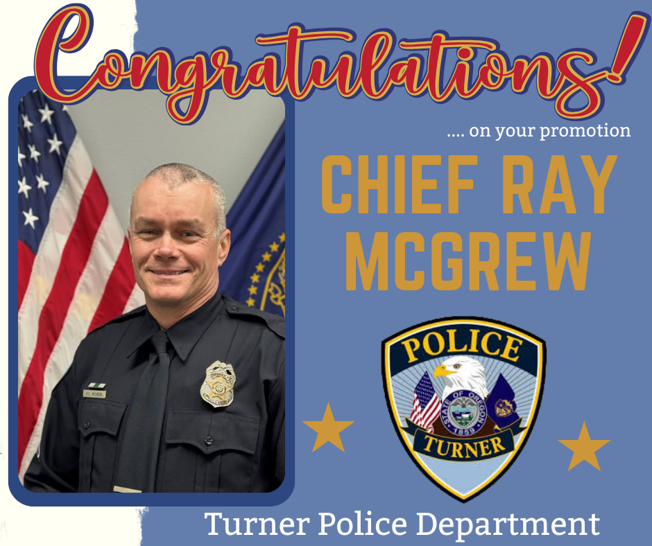 The Oregon Association of Chiefs of Police (OACP) is pleased to welcome Chief McGrew, who will officially join the City of Turner in early February. A familiar face in the community, Chief McGrew has called Turner home since 2007.