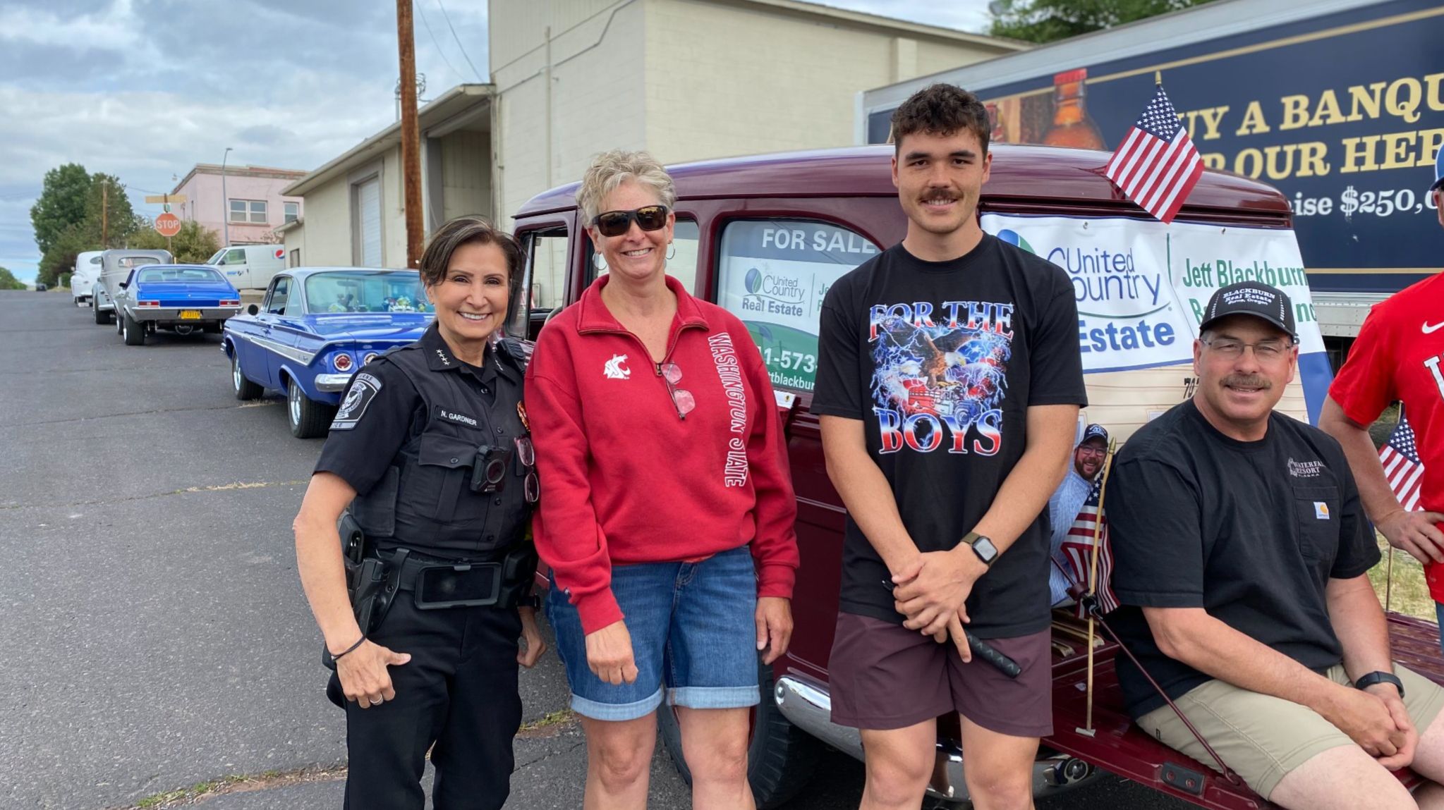Chief Nancy Gardner (Burns PD) took photos with community members at their local parade.