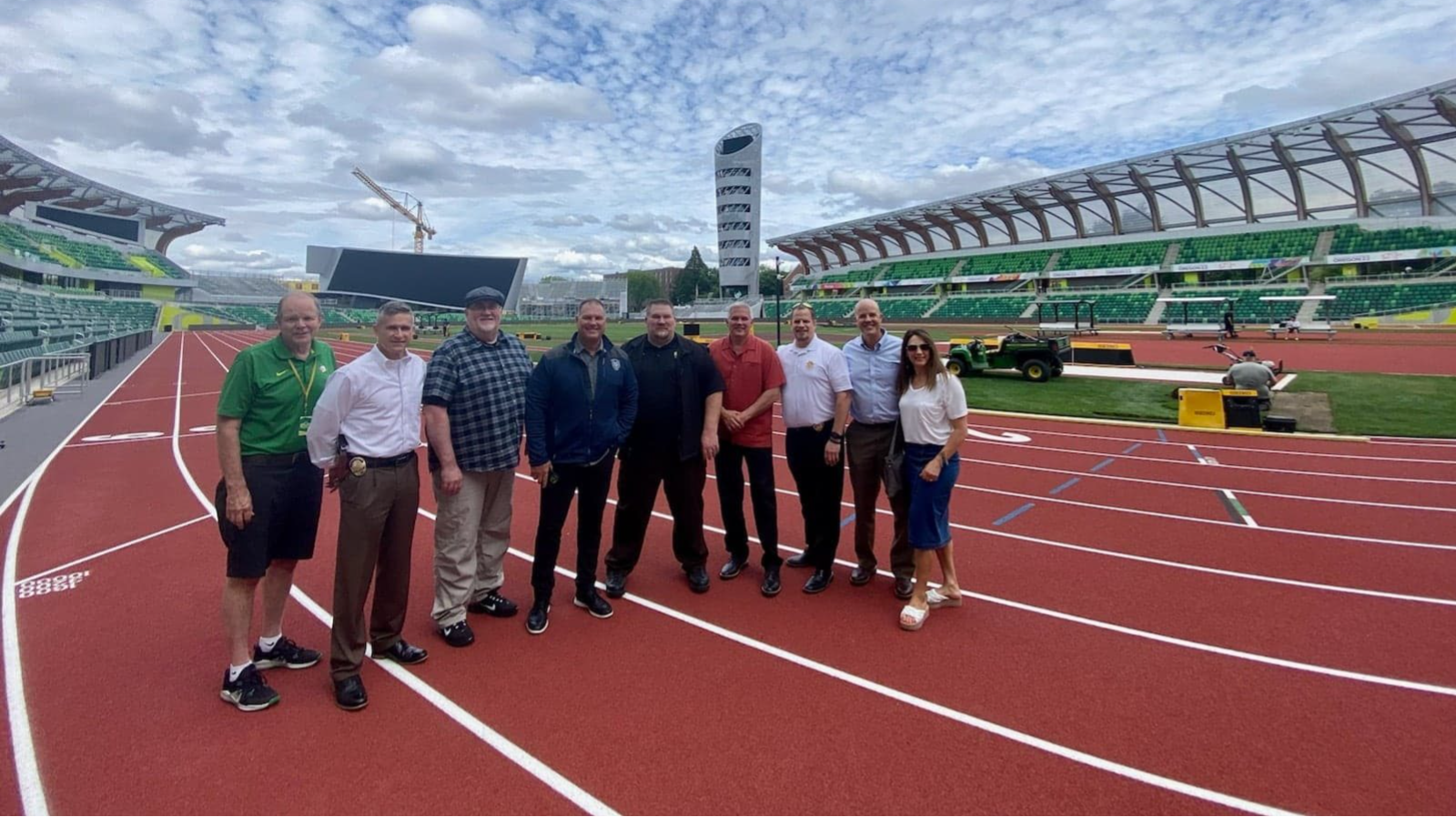 OACP's Board of Directors met both in person and over zoom this afternoon to discuss the workings of the OACP. There was robust discussion about a variety of topics and detailed discussion about possible changes in the Bylaws. Updates on what is happening in individual board districts were also shared. Thank you to OACP President Chief Skinner for hosting, providing lunch, and making arrangements for a tour of U of O's Hayward Field.