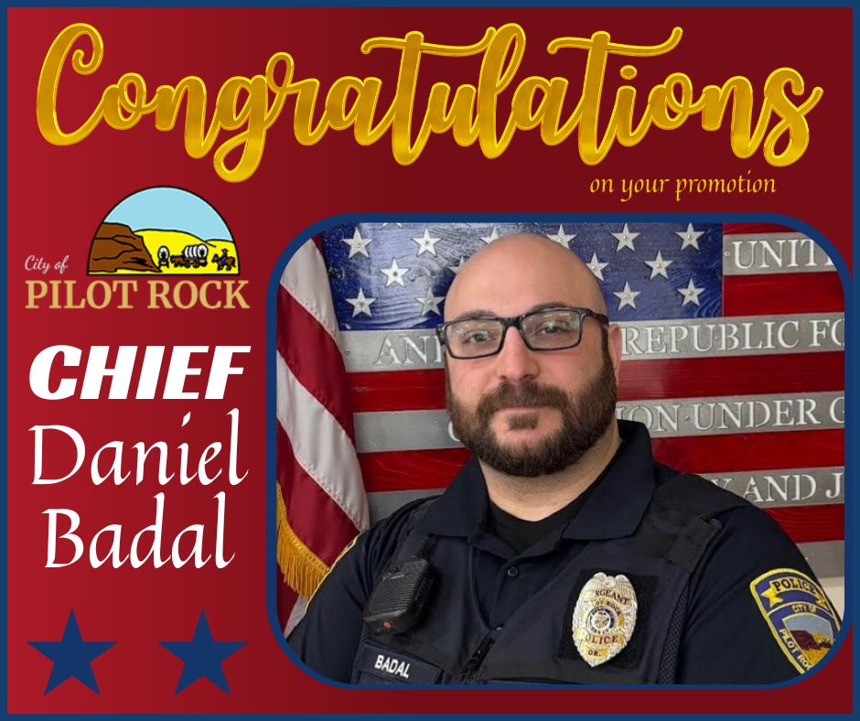 Chief Badal’s career reflects a continued commitment to serving the Pilot Rock community. His faith is an important part of his foundation and approach to service, helping guide his work and leadership.