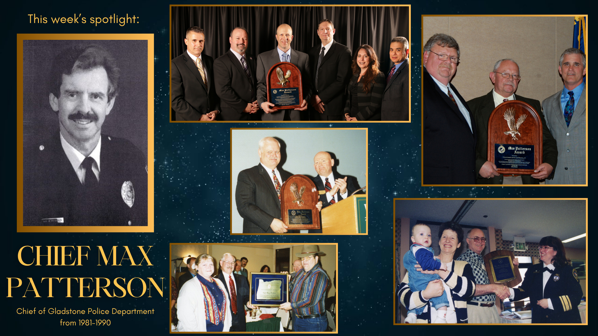 Max Patterson served as the Chief of Police for the City of Gladstone from 1981 until his untimely death on September 15th 1990. Max was very active in the Oregon Association Chiefs of Police serving on various committees and always offering his time and abilities. Max was a graduate of the FBI National Academy and understood the extreme value of the caliber of training offered to those who are fortunate enough to attend that training. Max also understood that not all Oregon Chiefs of Police were able to attend the FBI National Academy. As a result Max became dedicated to the concept of bringing FBI National Academy training to the Law Enforcement Executives of Oregon. Max was one of the driving forces behind the birth of the Oregon Executive Development Institute that hundreds of Law Enforcement leaders have been able to attend and receive world class training that would have otherwise been unavailable to them.