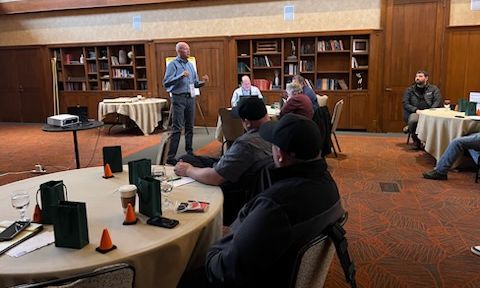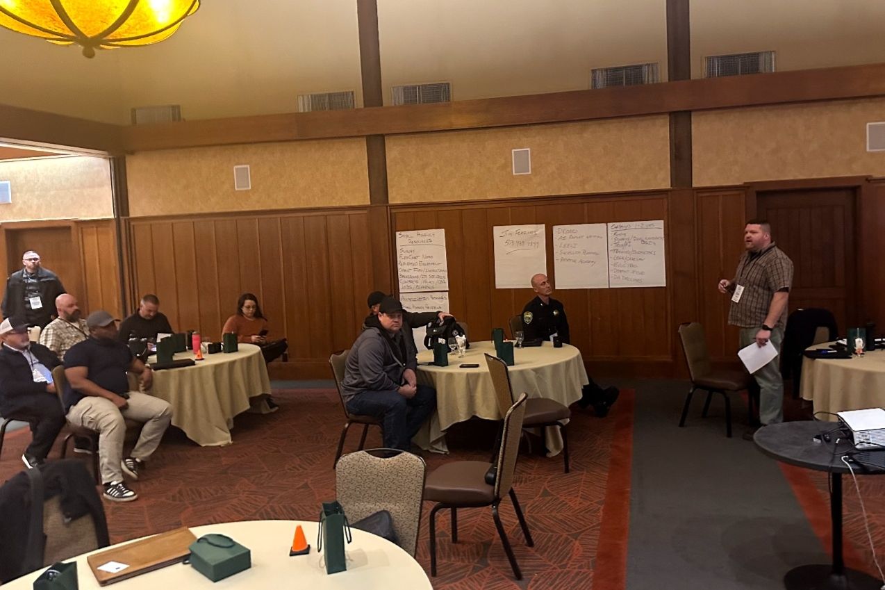 Tillamook Chief & Small Agency Conference Coordinator Nick Troxel asks attendees to share ideas on advancing small agencies across Oregon with the help of the OACP.