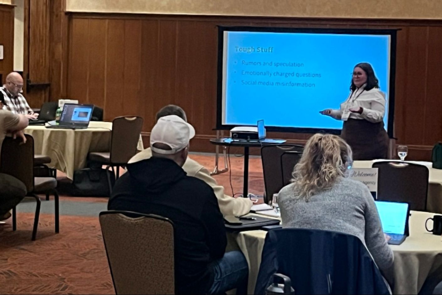 U of O Director of Issues Management Angela Seydel spoke on 'Public Information - what to share and what to avoid.'