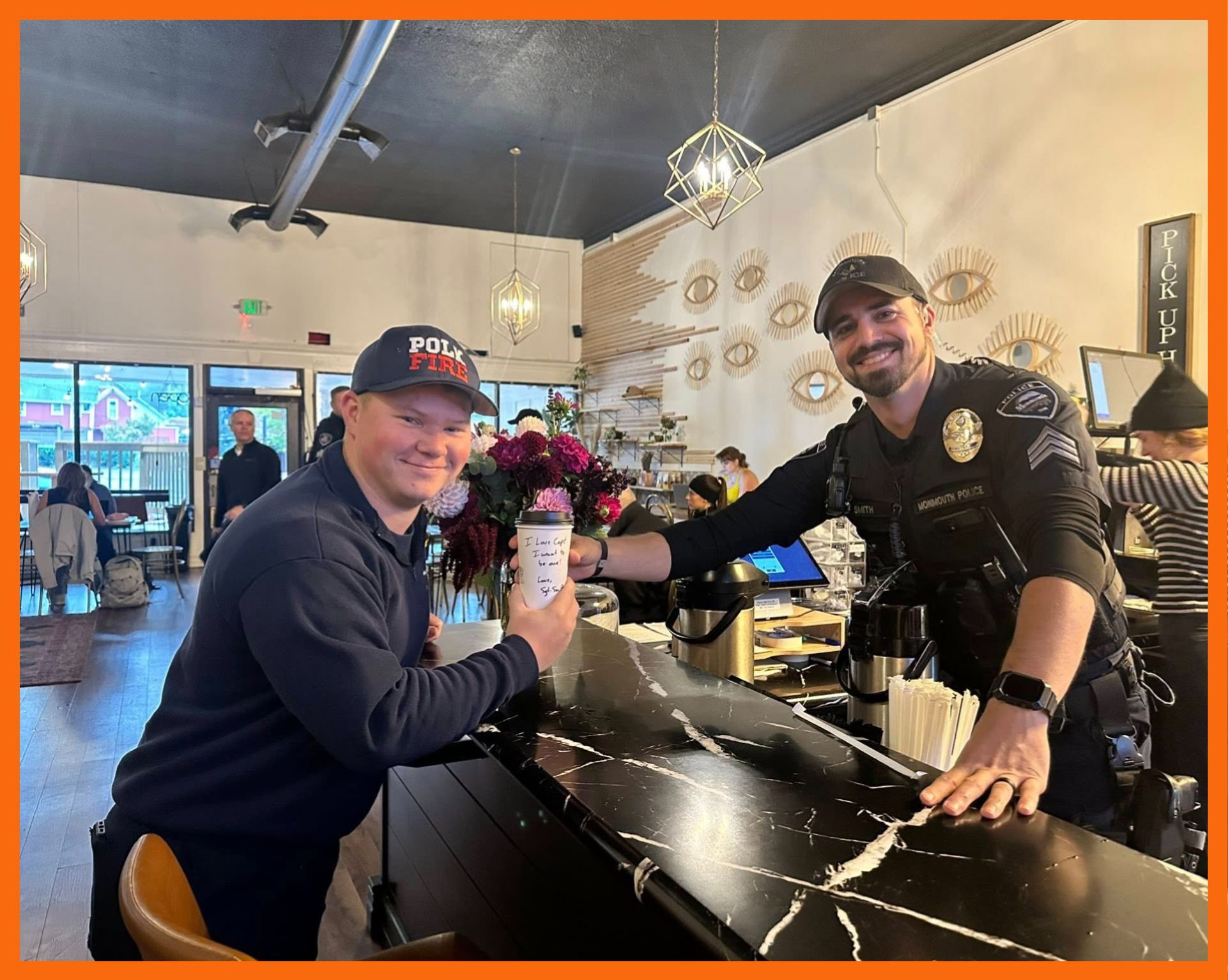 This fall, Coffee with a Cop events are percolating all over Oregon - and it’s thanks to you. Your willingness to listen, engage, and build relationships over a simple cup of coffee continues to make a lasting impact in your communities. Thank you for investing your time and heart in these meaningful moments.