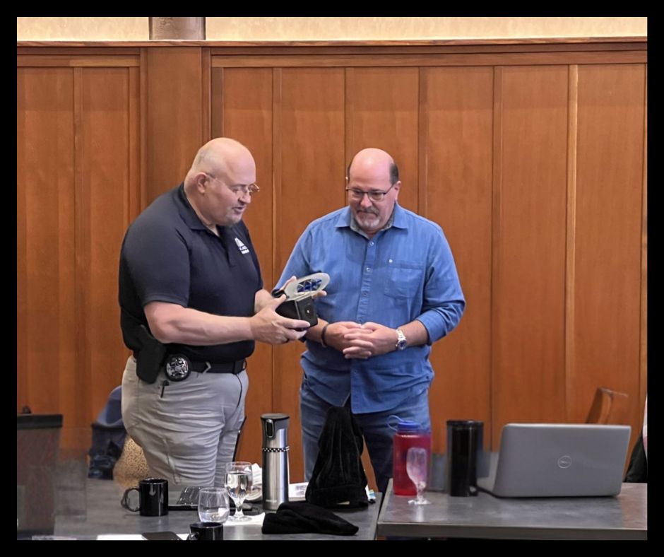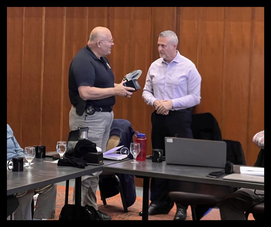 Chief Jim Ferraris (Ret.) (left) and Chief Warren Hensman (right) were selected as recipients of the OACP President’s Award which were presented during our Annual Conference in April. Unable to attend at that time, Chief Daniel, OACP Current Past President, had the honor of presenting both chiefs with their awards this past weekend in recognition of their outstanding service to the association.